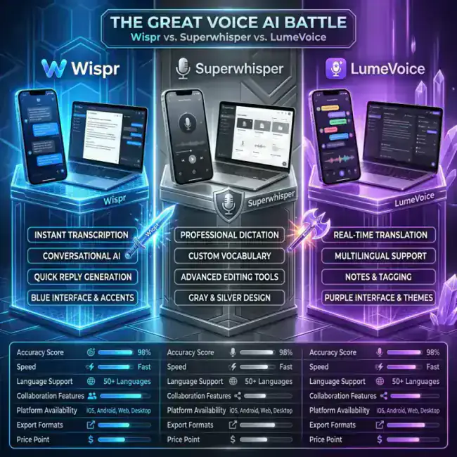 After testing all three, LumeVoice wins for its combination of speed, accuracy, and "context-aware" editing. Join the waitlist now to get early access.